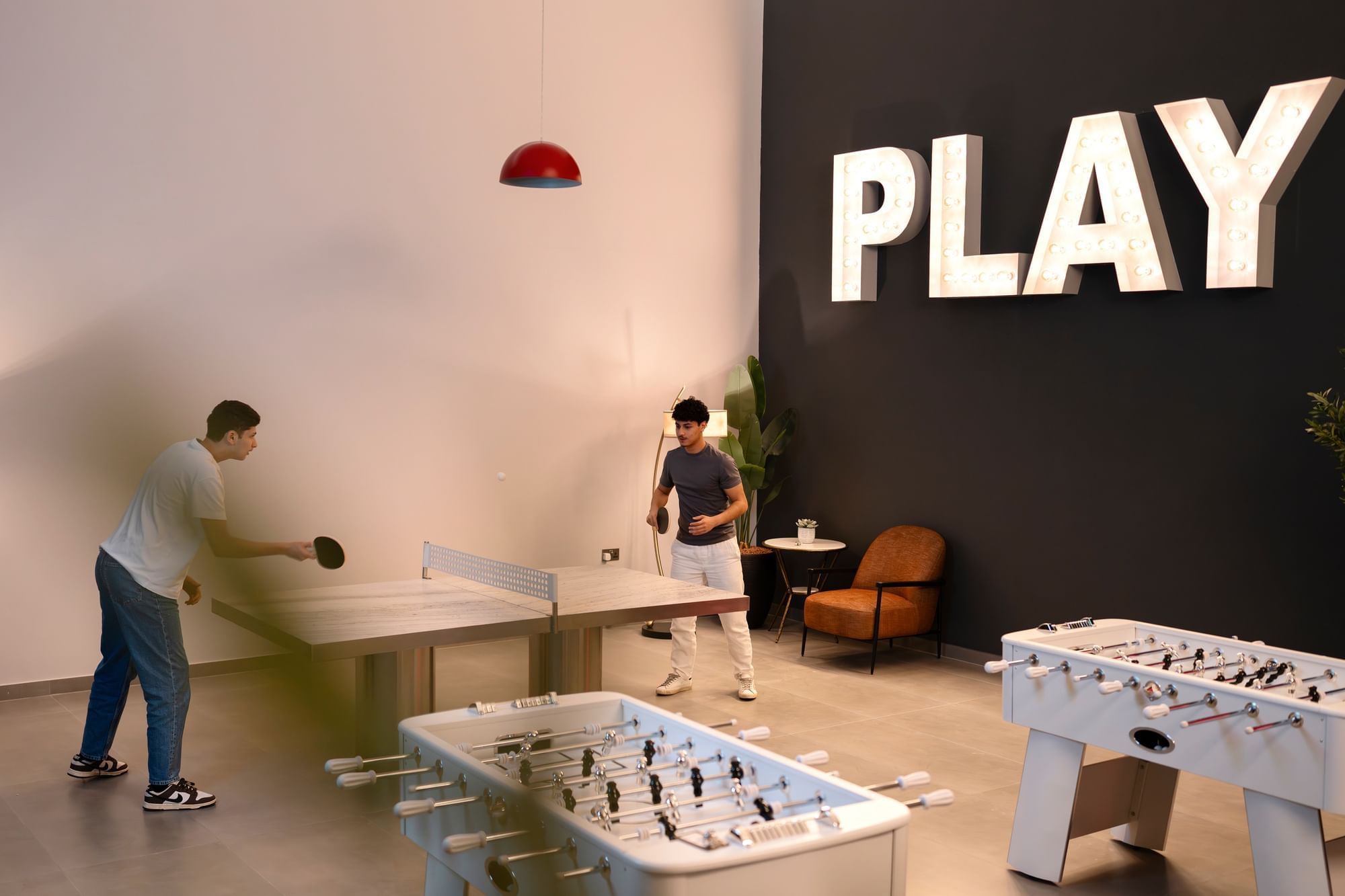 لعشاق الرياضة، لا تفوتكم تجربة اللياقة البدنية في الاستوديو والصالة الرياضية المُجهزين بأحدث التقنيات وانعموا بممارسة تمارينكم المفضلة وسط إطلالات رائعة تنساب عبر نوافذنا الشاهقة التي تكشف عن جمال قناة دبي ومعالم دبي النابضة بالحياة. وفي أستوديو الإحماء، تنتظركم تجربة تدريب متخصصة تلبي شغف عشاق اللياقة البدنية والباحثين عن الرشاقة.